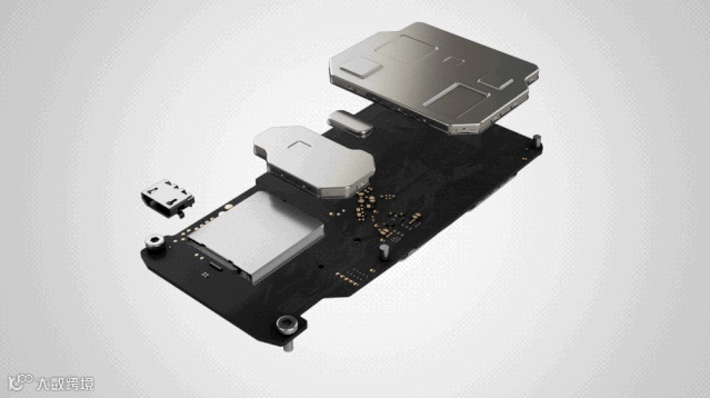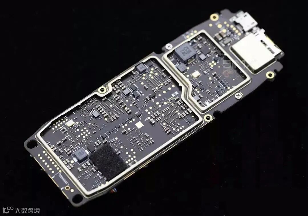 GPS模块是一个独立的存在,它可以被拆下来。它的背面是主板,而主板上布满了电磁屏蔽罩。