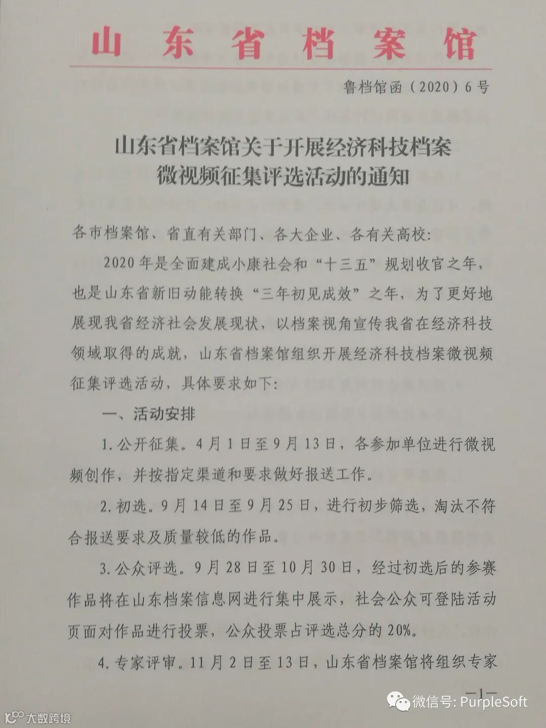 山东省档案馆关于开展经济科技档案微视频征集评选活动的通知
