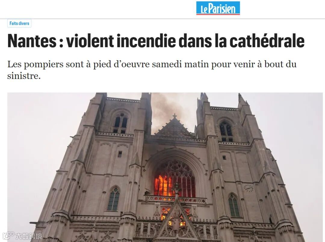 2019年4月,巴黎圣母院发生火灾,损毁严重