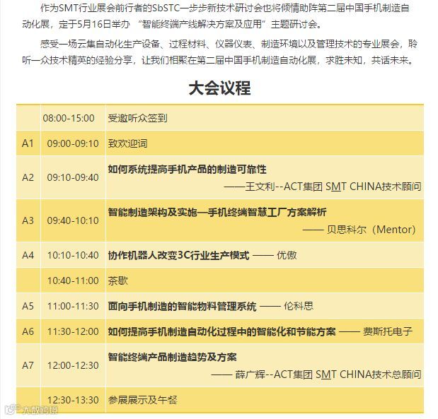 由SMTChina 组办的《一步步新技术研讨会》:智能终端产线解决方案及应用