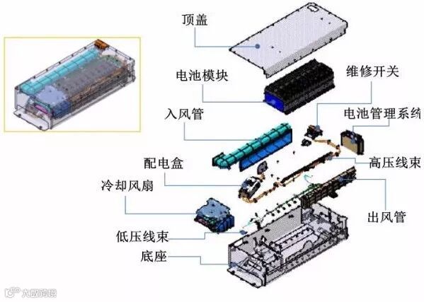 电芯(Cell)是一个电池系统的最小单元。M个电芯组成一个模组(Module),N个模组组成一个电池包(Pack),这是车用动力电池的基本结构。