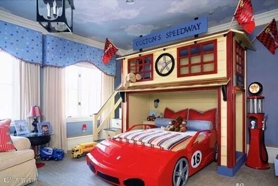 每个男孩子都渴望自己是最酷的那个,这样的床足够酷了吧?不仅酷,还通过设计增加了护栏确保了孩子安全。