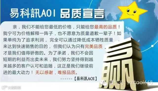 深圳易科讯科技有限公司成立于2006年,是一家专业从事高科技产品的研发,生产,销售及服务的专业SMT设备制造商。近年我司专注研发高新技术AOI自動光学检测仪,在专业化的经营理念下,易科讯人秉承一贯务实和严谨的开发创新精神不断地推陈出新。