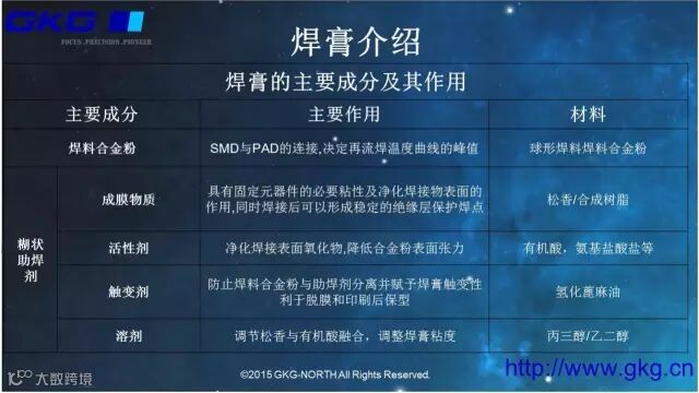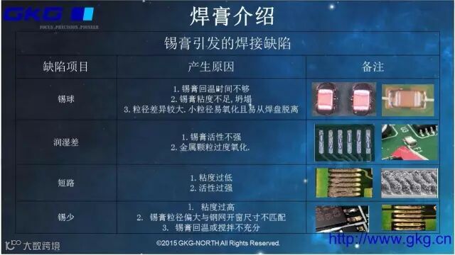 伴随电子产品向短、小、轻、薄化方向发展,03015等片式元件以及QFP、CSP、BGA 等细间距器件得到大量应用,这些对锡膏工艺及设备提出了更高要求。此外,无铅化工艺的实施也对现有工艺提出了新的要求。要正确的使用锡膏,满足细间距及无铅化要求,做好印刷工艺管控,防止焊后缺陷的发生,就必须对锡膏基本知识及印刷工艺性要求有所了解和掌握,了解参数设定及其内在原理,才能有效的做好焊锡膏印刷品质与控制。
