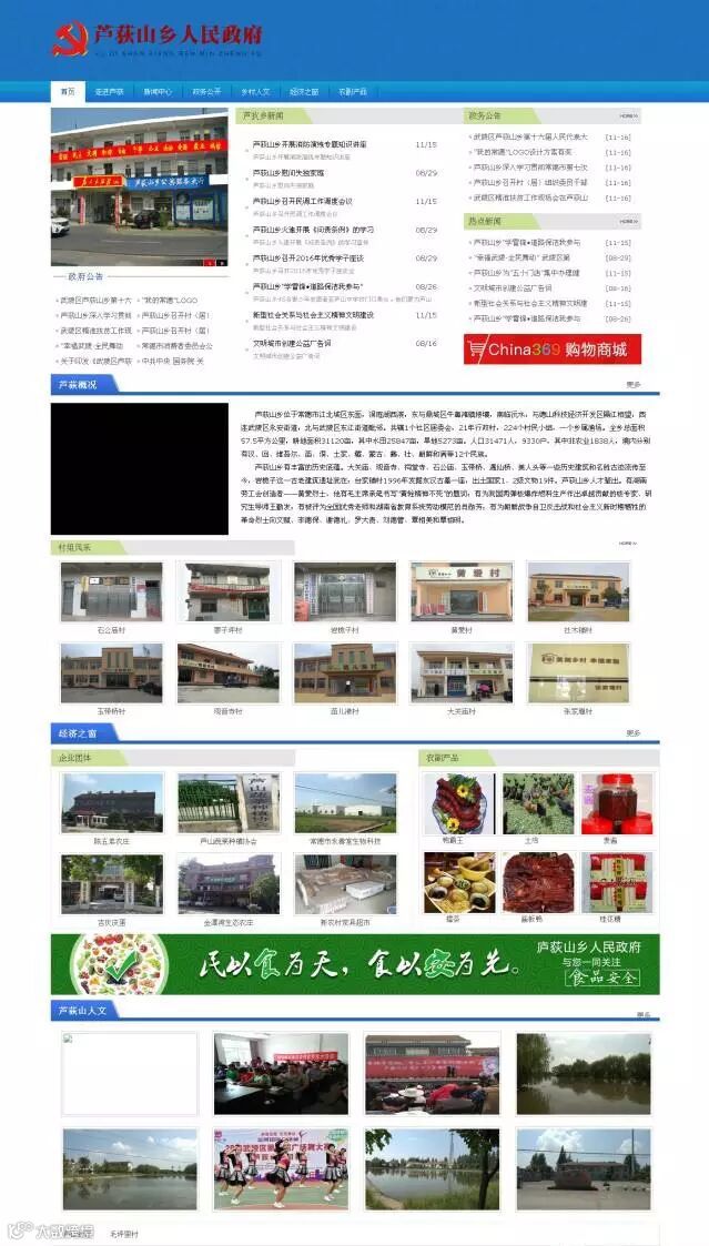 2016年 9月13日上午9点,在常德市武陵区政府、商务局相关领导的牵头引导下,在芦荻山乡政府举办了芦荻山乡实现“双电工程”宣传动员大会,为芦荻山乡打造“智慧乡村”铺设高速信息通道,为芦荻山乡搭建了乡、村级云平台站点,根据实际落地区域开通云终端无缝对接云平台,将芦荻山乡各村线下碎片化的资源全面整合到云平台上进行全网推广,将有效解决芦荻山乡各村农产品上行最初一公里及工业品下乡最后一公里,将随着首个云平台应用在该地的有效推进,为本乡打造“智慧乡村”奠定基础。经过两个多月的努力,芦荻山乡和村部网站建设已接近尾声。下面我们一睹风采。