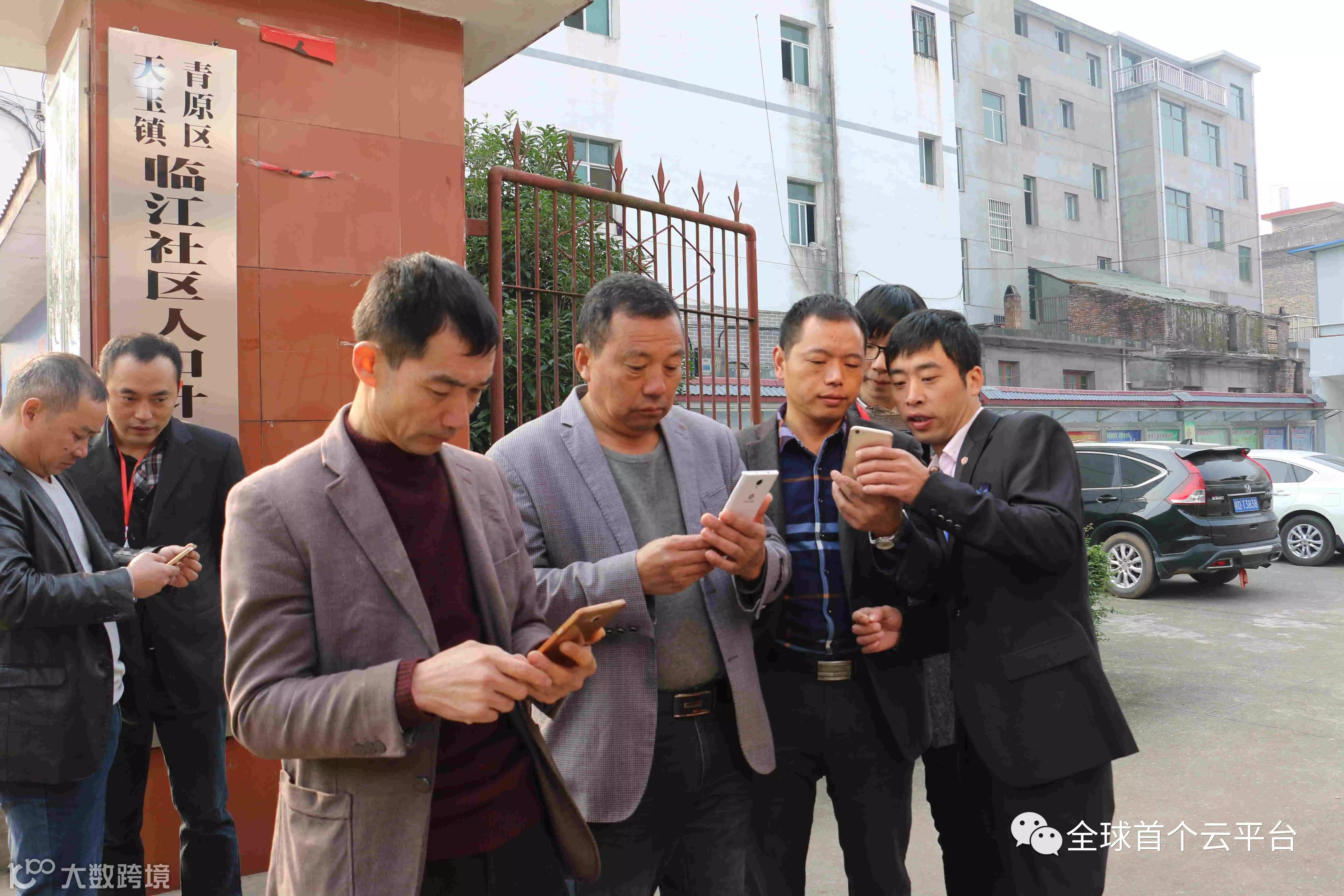 (社区干部正在青原区云中云工作人员的指导下扫描蝴蝶云及村平台二维码)