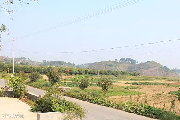 村里的旱地,苗木林和远处的山