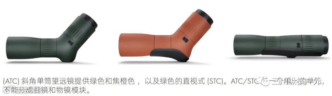 (ATC) 斜角单筒望远镜提供绿色和焦橙色 ,以及绿色的直视式 (STC)。ATC/STC 是一个单一的单元,不能分成目镜和物镜模块。