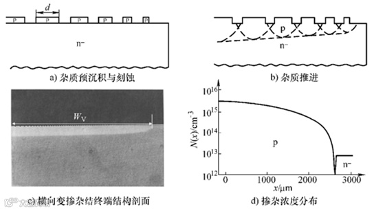 图7横向变掺杂结终端结构剖面、掺杂浓度分布及制作流程