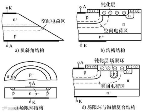 负斜角结构适用于深结、圆芯的高压整流二极管,其他三种结终端结构都适合于浅结、方芯的快恢复功率二极管。