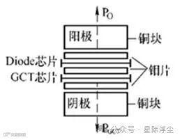 由AS-GCT与二极管通过钼片串联压接而成的。GCT的阴极作为RB-GCT的阴极,二极管的阳极作为RB-GCT的阳极。反向工作时,阻断电压由二极管承受。采用这种压接式封装, 其冷却成本可降低50% 。
