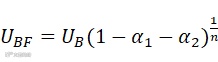 晶闸管的P1和P2层常同时扩散形成,因而具有相同击穿电压,即UB,n为一常数,取值为4;α1、α2分别为阴极p1n1p2晶体管、阳极n2p2n1晶体管的电流放大系数