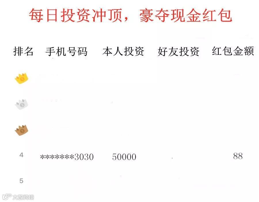 第一、二、三、五名,因未达到规则二中各名次对应的最低投资额,故空缺。