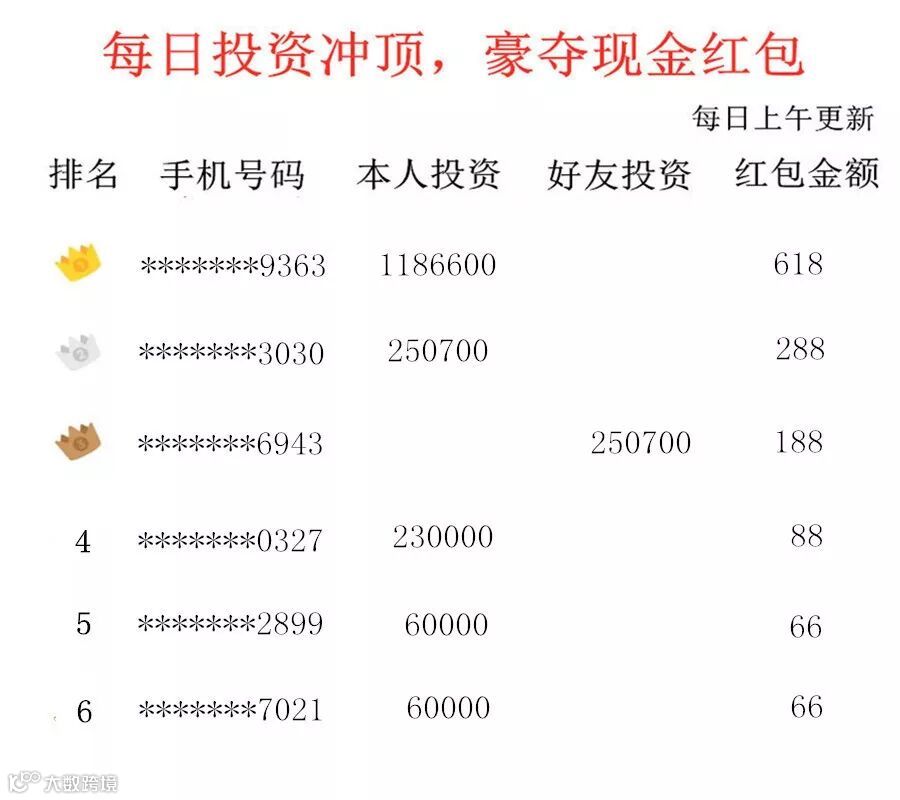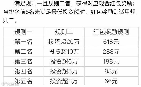 (划重点:本人投资+好友投资金额之和进行排名,所以,邀请的好友越多(尤其是土豪朋友),获得红包的机率就越高)