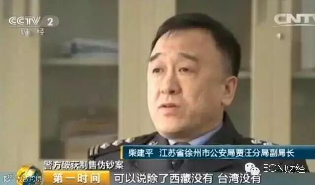 徐州市公安局贾汪分局经侦大队教导员 王宏斌:这张纸应该看的比较清楚,它比A4纸稍微小一点,一般情况下,一张纸打印的是三张,这上面是仿伪的金线。
