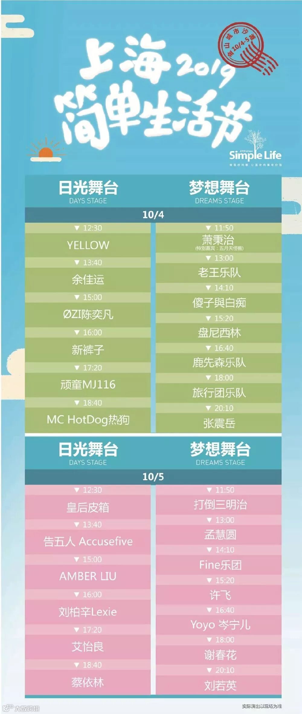 先前已在大麦网成功预订门票的观众,将从明日开始,陆续通过快递收到实体门票,安心等待简单生活节的开幕。欢迎你来到这场欢乐的海滩派对,和我们身边的音乐人、创意人、艺术家们一起,享受假日里平凡却真实的快乐🏄🏄