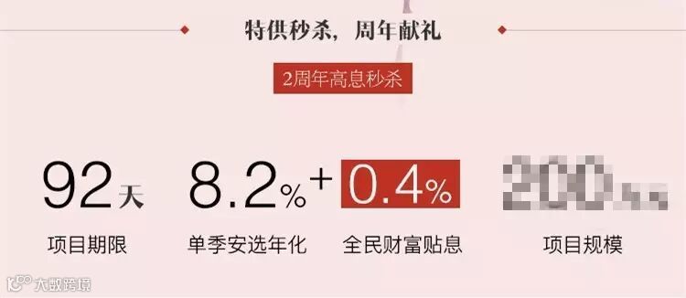2、活动期间,全民推出限量周年庆特供标的,额度有限,先到先得,每日不定时开抢。