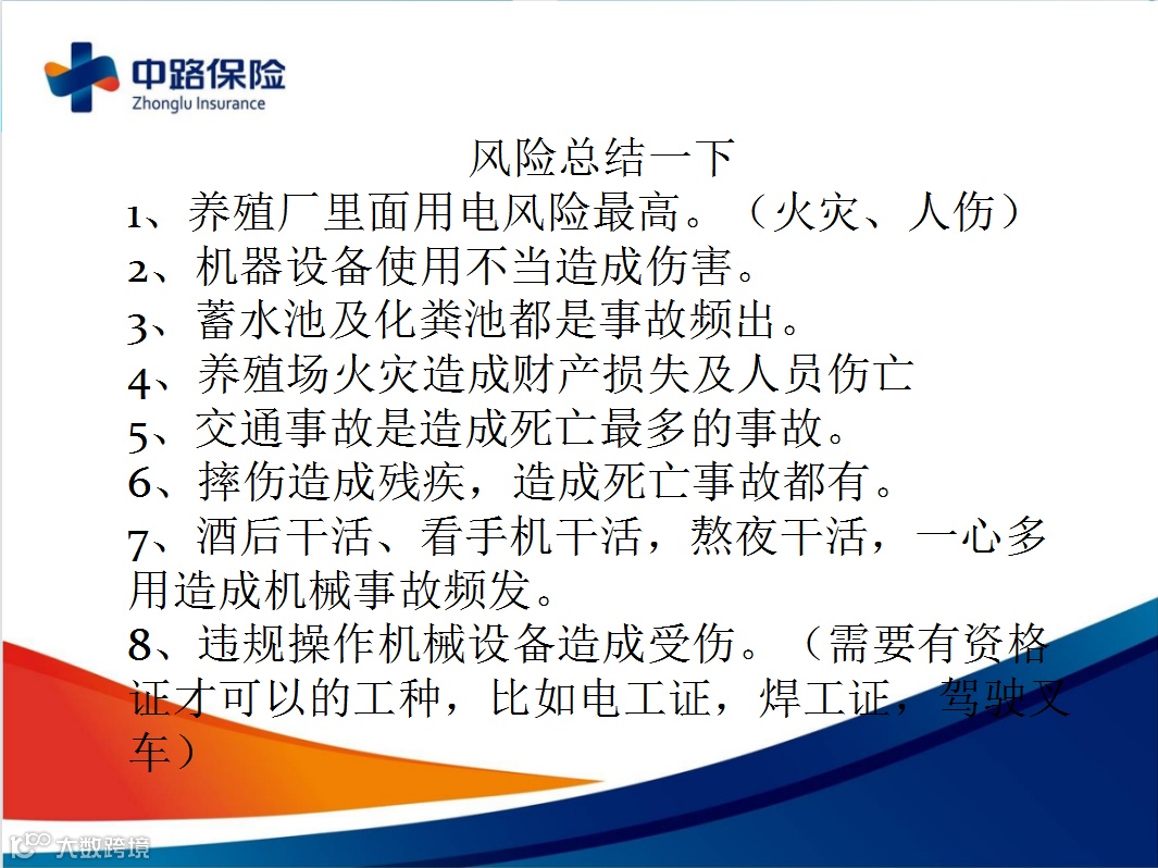 近年来广大养殖户因安全防范意识薄弱,死亡、伤残事故频发。自2020年来保险公司累计为担保公司担保客户赔付317.66万元,赔付有价但生命无价!