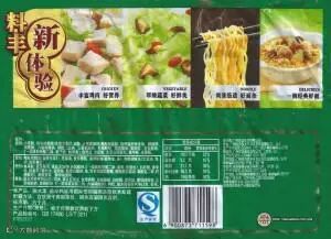 这是包装的背面。注意里面有鸡肉。煮的时候,先加入面块和蔬菜包,冲入500ml开水,然后煮4分钟。加入剩余调料包并搅拌。开动吧!