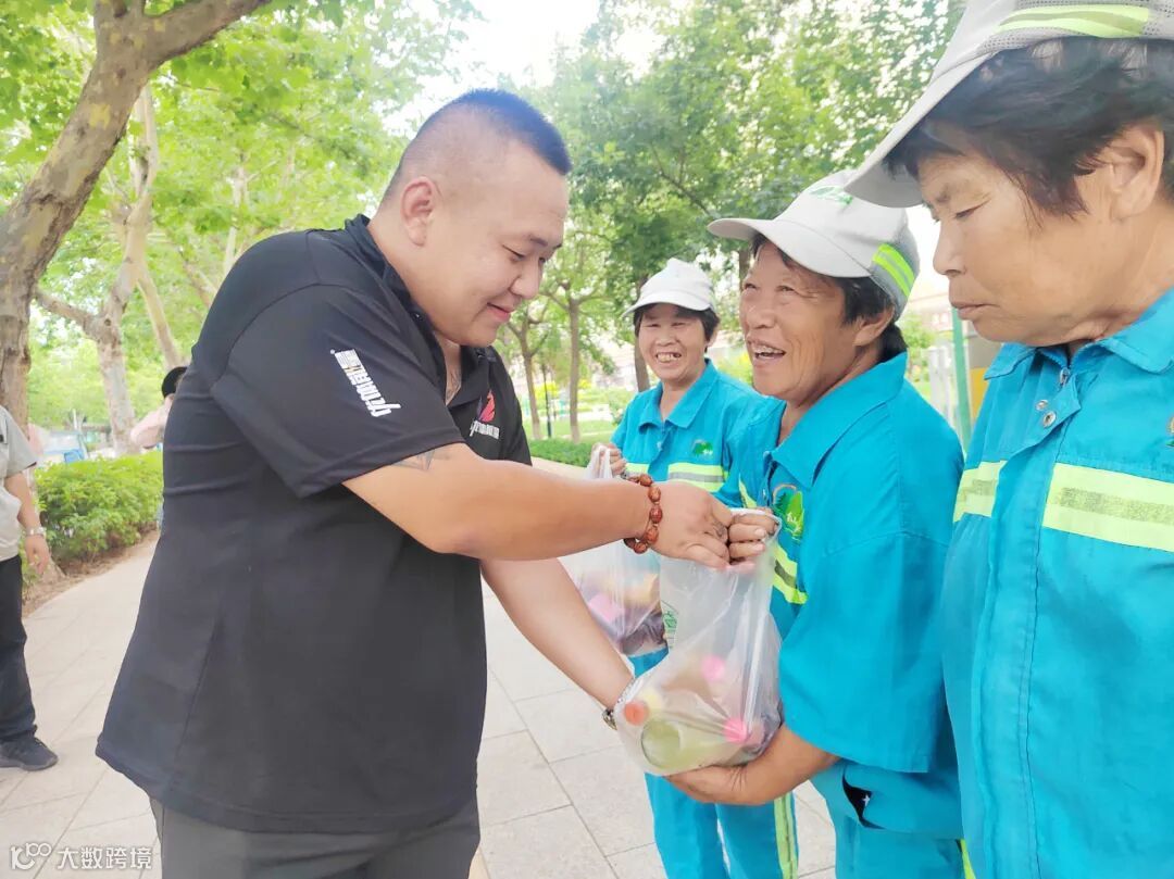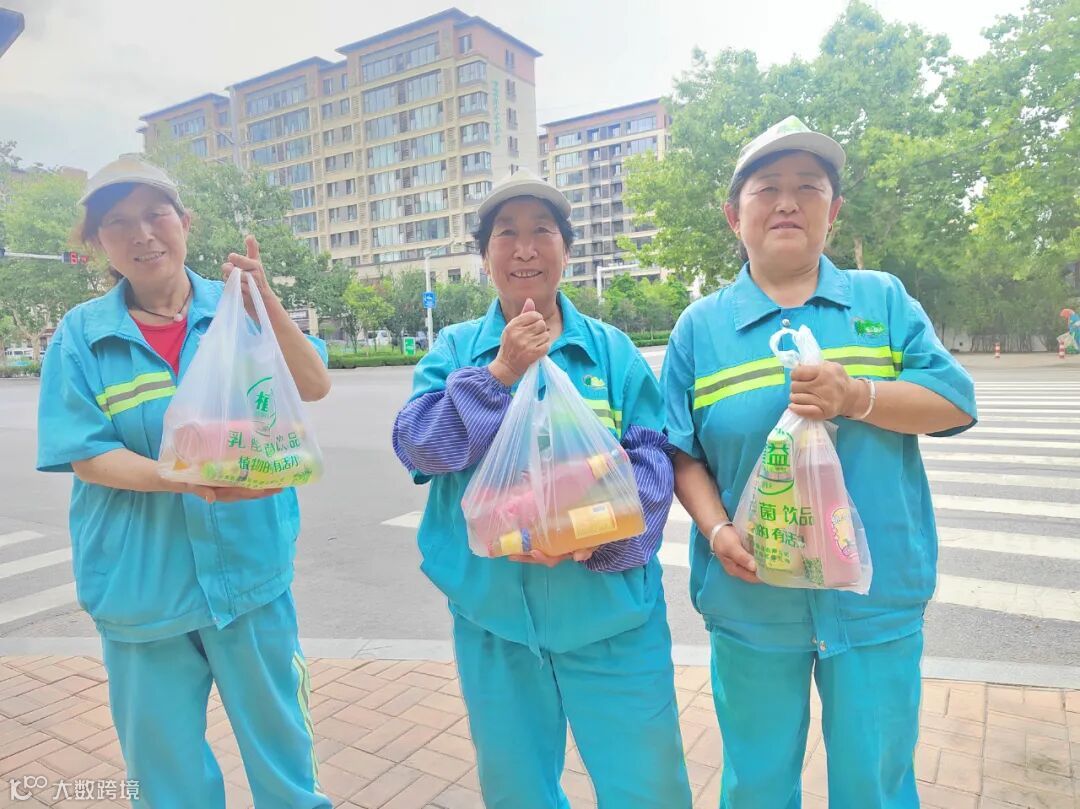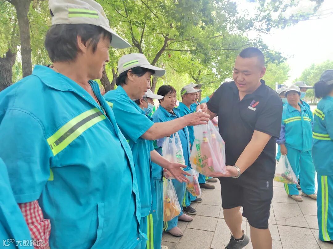 一声问候、一份礼品,让环卫工人们在炎炎夏日里真切地感受到来自社会的关怀。在这里我们衷心感谢这些爱心企业、爱心市民,青山绿水公司将继续秉承“花园城市,洁净家园”的美好使命,一如既往地做好城市服务管理工作,以实际行动回报社会各界对城市服务工作的支持与厚爱!