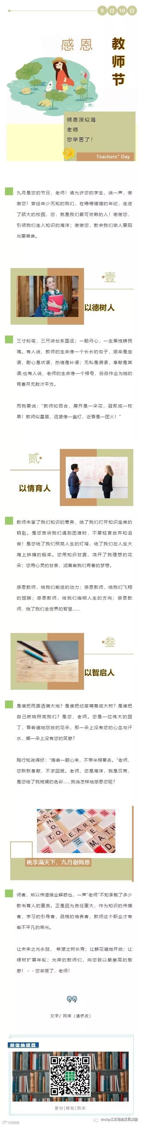 导读:教师节快乐亲爱的老师,向您表达我最衷心的感谢。在人生旅途上,您为我点燃了希望之光,您所做的一切润泽了我的心灵
