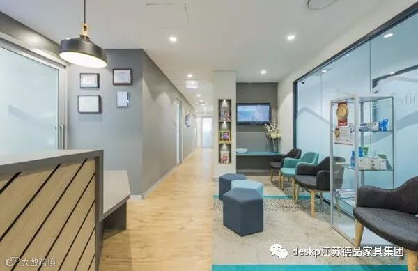 这个口腔诊所装修设计是采用精炼简约的手法,并加入柔和的细节元素,实现了医疗专业度和环境亲和力的协调。