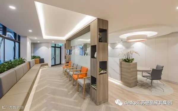 前厅等候处的设计,适当地做了加法,一道玻璃门隔开了前台和诊疗区,有效保护了客户的隐私。