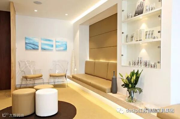 再来看等候区,舒适兼具艺术感的沙发椅、美容产品陈列、精美的壁画等,这些可以让等候的时间变得不那么无聊乏味。