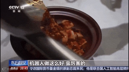 记者在春糖会,首次设立的人工智能设备专区看到应用AI模型的新装备正加速进入餐饮食品和大健康领域,这个橡鹿机器人还在现场亮出绝活,三五分钟就炒出了四川辣子鸡和麻婆豆腐。