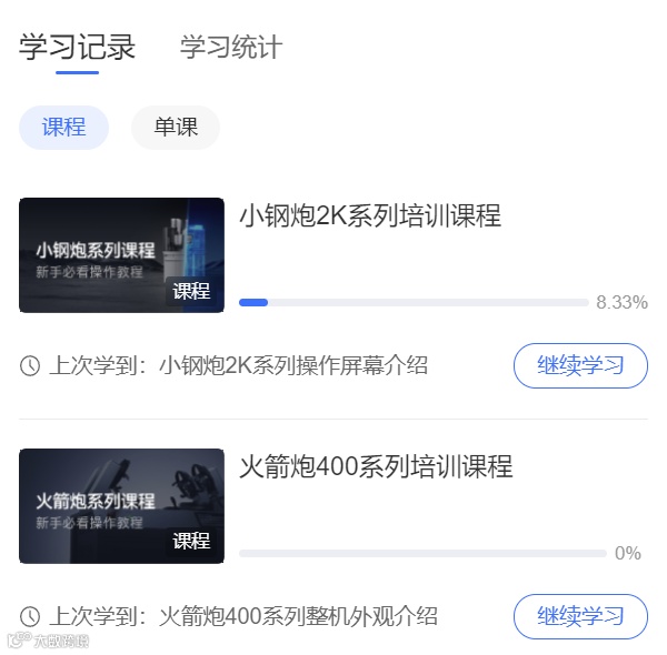 学习中心页面为您规划了清晰的学习路径,您可以在这里系统学习所有课程,并追踪自己的进度。