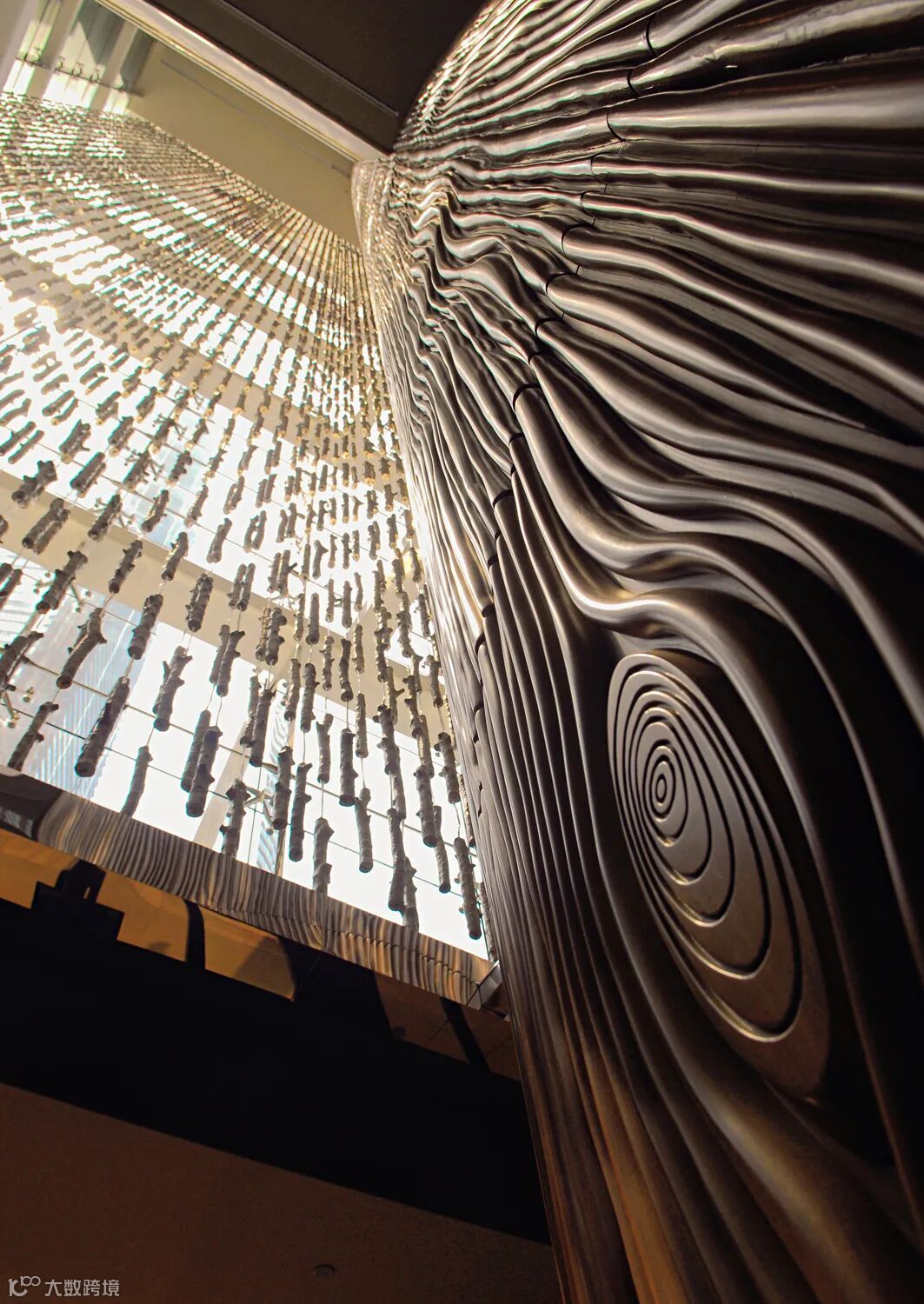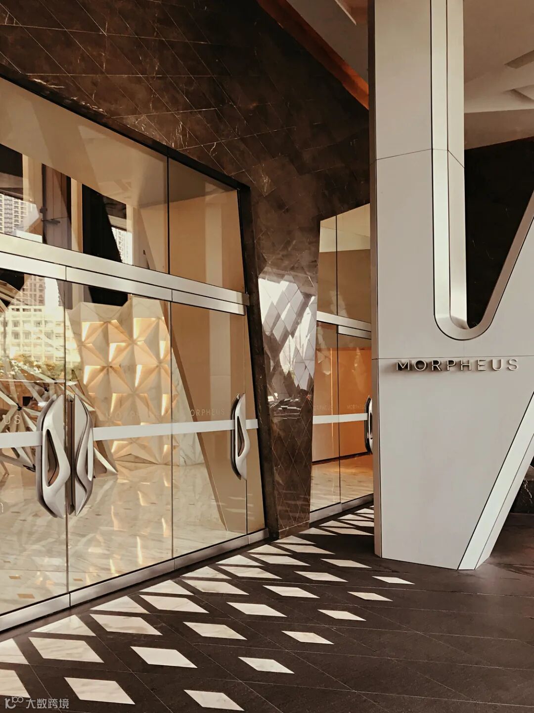 澳门摩珀斯酒店坐落于新濠天地。摩珀斯酒店是世界上第一个形式自由的高层网状结构塔楼。建筑的承重结构也是立面的纹理。三个水平漩涡组成的镂空空隙让酒店内部的公共空间别具一格。在镂空结构之中,中庭之内,几座廊桥横穿其中,成为连接酒店餐厅、酒吧和宾客休息厅的别致空间。