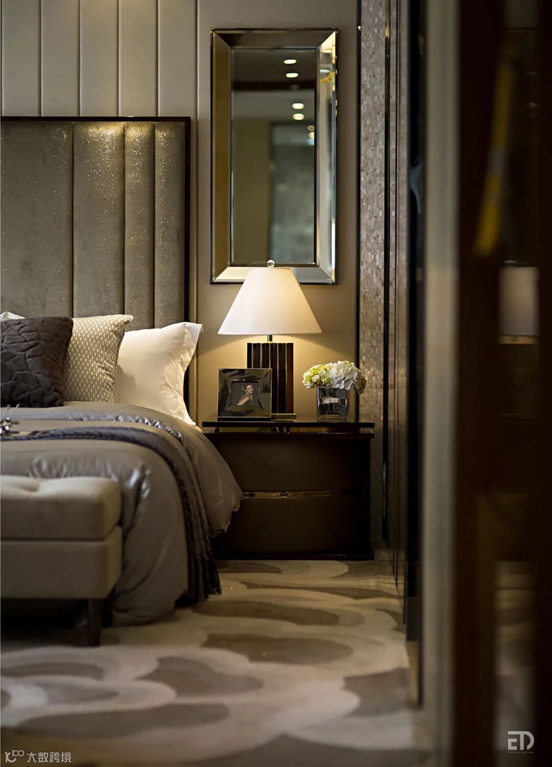 样板间以大都会风格为主调,由梁志天设计团队负责室内设计,戴勇设计团队负责软装执行。室内以现代奢华的手法,透过精巧的布局及华美的陈设配饰,演绎超凡品位,呈现矜贵非凡、品位盎然的生活体验。低调而沉稳的空间,搭配精致的陈设软装,焕发着瑰丽雅致的气氛。