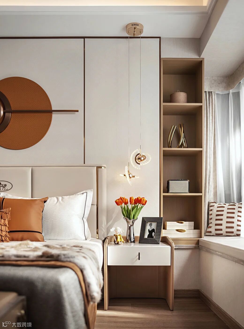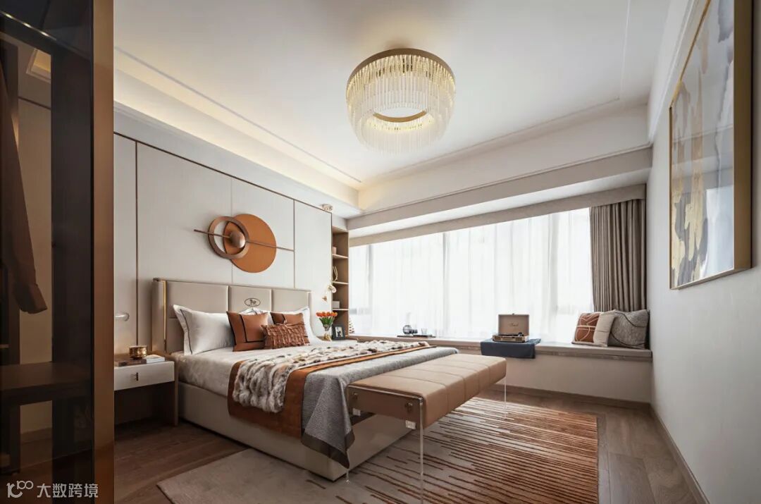 一个奢适卧室,是一个充满惬意的温暖回归。在讲究“私密品质生活”的当代生活,现代轻奢着力摆脱古典的繁琐,不管是色彩、造型还是材质,都更能营造出优雅、舒适的睡眠环境。皮质和金属相结合,让原本看似简单的卧室变得韵味无穷,也彰显出主人对于精致生活的追求。