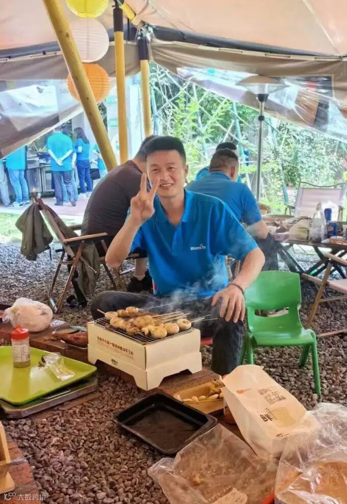 中午时分,同事们聚集在户外烧烤区。炭火烧得正旺,食材散发出阵阵诱人的香味。烤肉的香气扑鼻而来,大家围坐在一起,分享着美味和快乐。