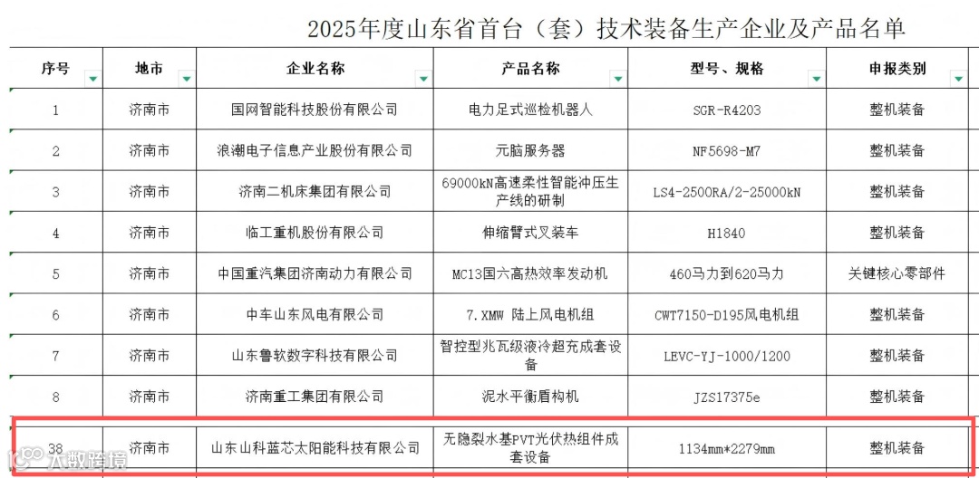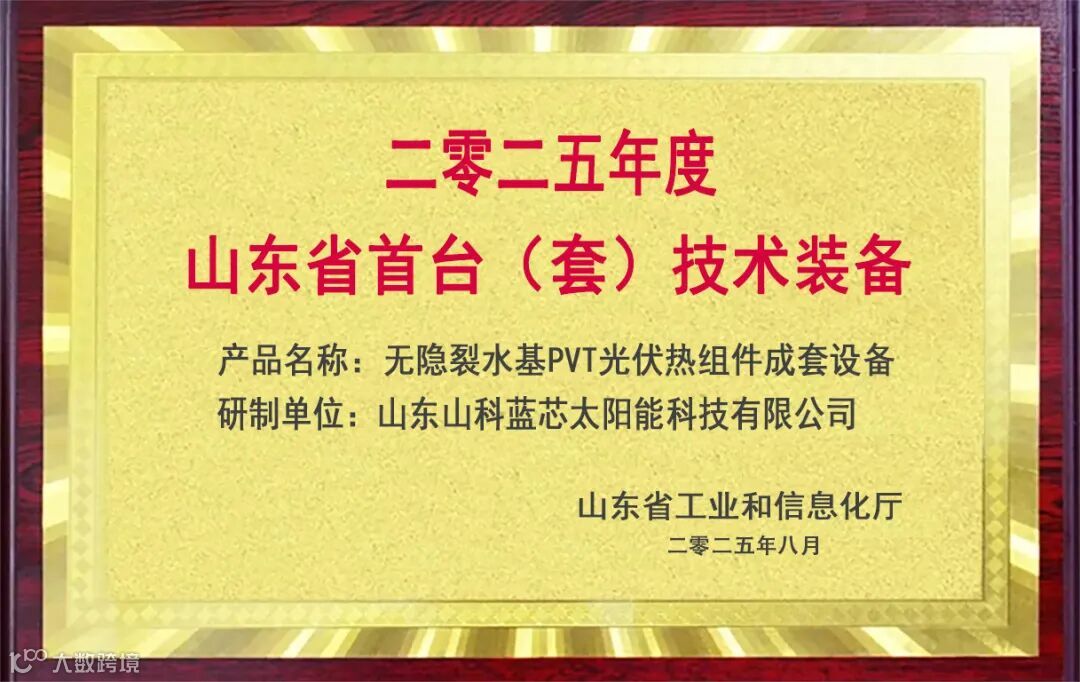 2025年度山东省首台(套)技术装备名单重磅发布!山科蓝芯自主研发的无隐裂水基PVT光伏热组件凭借领先的光伏光热一体化技术成功入选,为实现高效清洁能源利用提供全新解决方案!