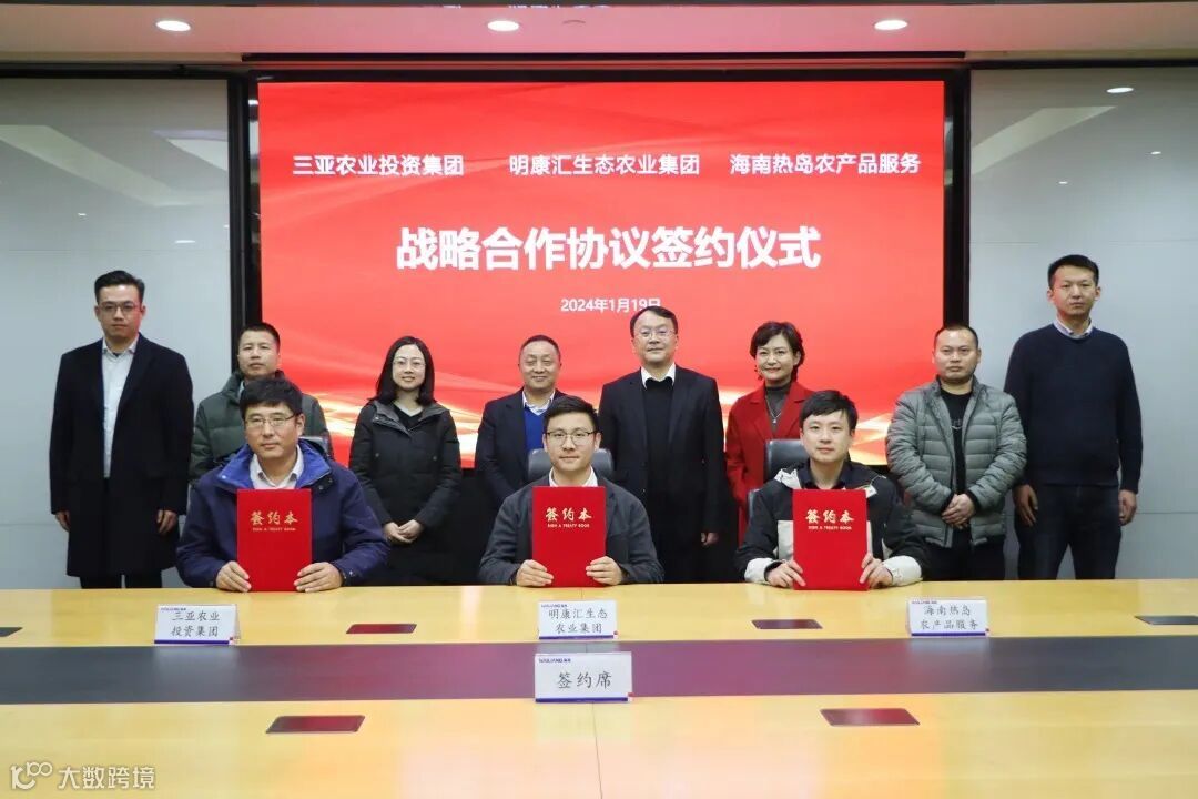 1月19日,三亚农业投资集团党委副书记、总经理崔杰带队前往海亮集团考察学习,并与明康汇生态农业集团、海南热岛农产品服务有限公司签订乡村振兴合作协议。海亮集团副总裁、明康汇生态农业集团董事长詹天浩出席签约仪式。