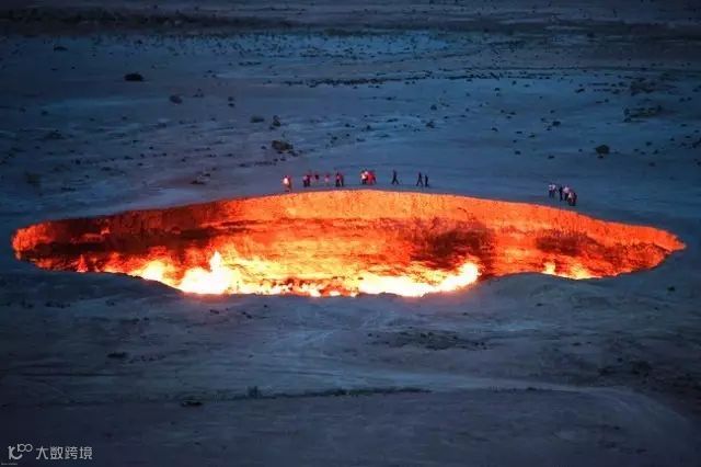 1971年,苏联地质学家在土库曼斯坦开凿天然气时,地下钻机倒塌形成一个直径约70米的大坑。由于担心坑中可能会释放有毒气体,就点燃了坑内的气体,此后大火便一直燃烧至今。
