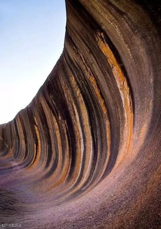 澳大利亚西部的波浪岩。由于它像高高的海浪因而得名,露出地面的部分占地几公顷,“浪潮”的部分岩石高约15米,长约110米。