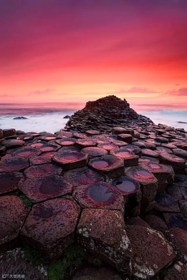 巨人堤道(Giant's Causeway)位于北爱尔兰 贝尔法斯特 西北约80公里处大西洋海岸。由总计约4万根六角形石柱组成8公里的海岸。石柱连绵有序,呈阶梯状延伸入海。