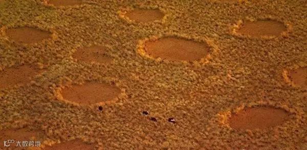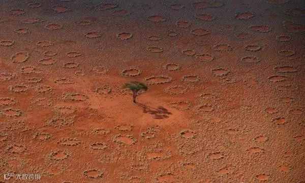 仙女环,纳米比亚。这些神秘的环形图案其实是非洲草原上不生寸草的土地。大的有30英尺宽。科学家认为,这是地底的白蚁吃掉了环里的植被而造成的。