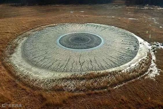 摄影师乘坐飞机飞跃俄俄罗斯东部时,看到地上放佛有一颗巨大的眼睛在盯着他,原来这是普加切夫斯基泥火山( Pugachevskiy mud volcano)。