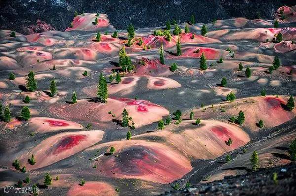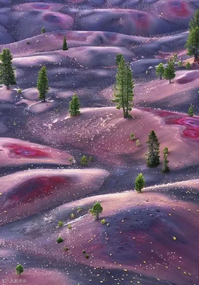 美国拉森火山国家公园,火山坡上的沙丘呈现斑斓的彩色。这是火山活动的结果,美得让人窒息。这一幕像是油画,上帝的画作。