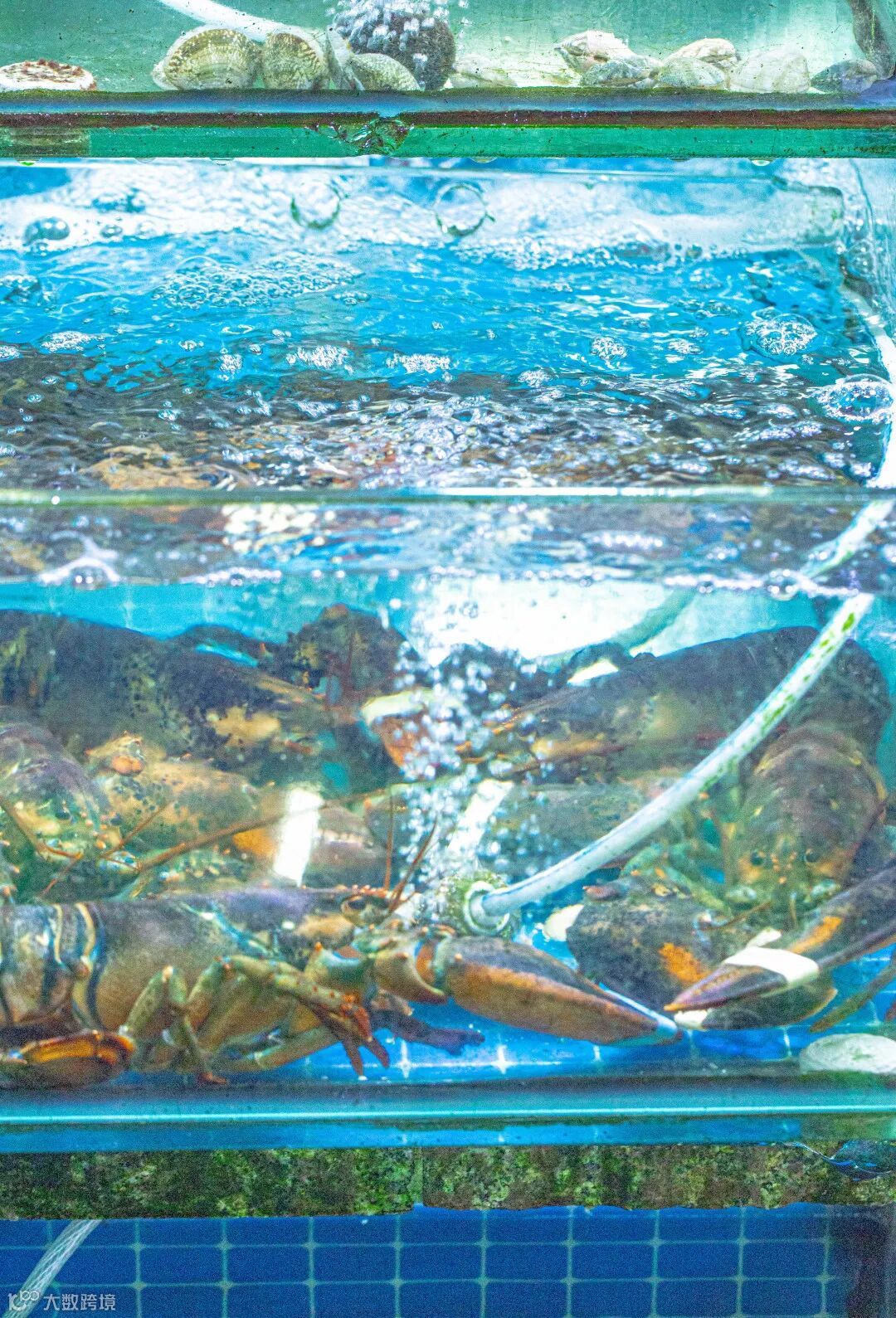 蔚蓝的色彩是浪花拍到了农贸市场里