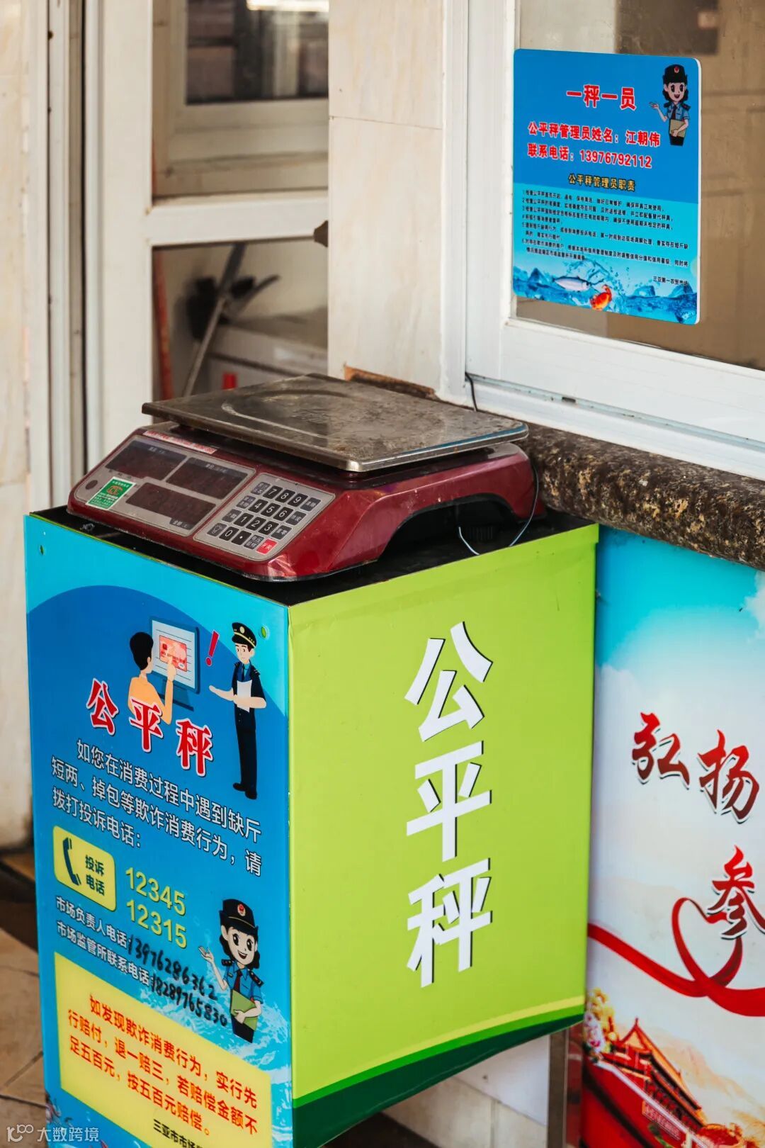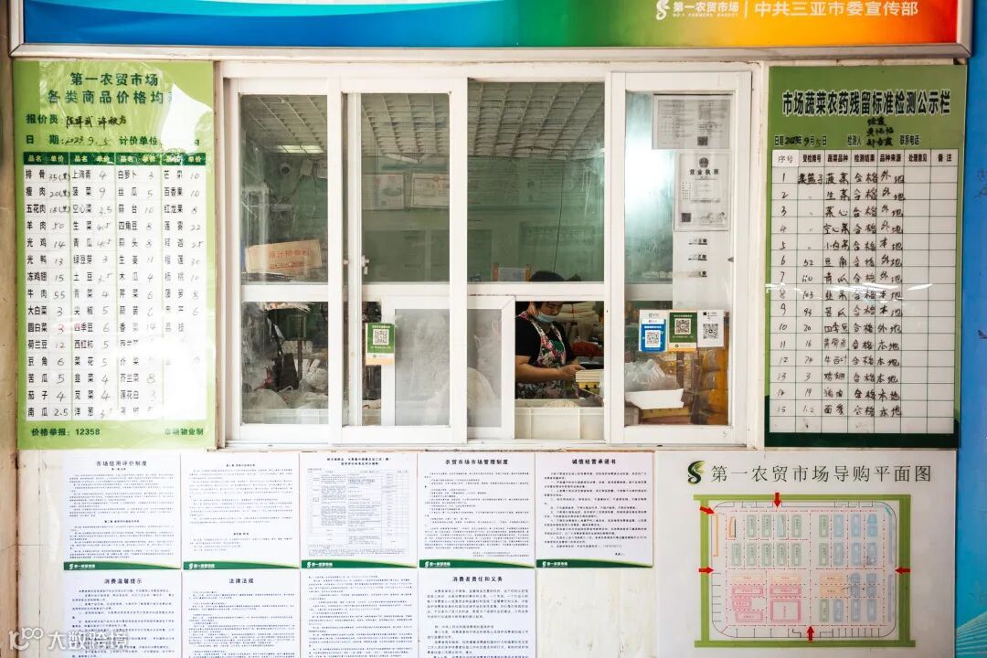 大门的左右两侧分别放置着“农贸市场价格均表”“市场蔬菜农药标准检测公示栏”和一台“公平秤”。规范的市场管理,细致的安全检测,不断优化的市场环境,让农贸市场的交易更加透明,服务更加贴心。