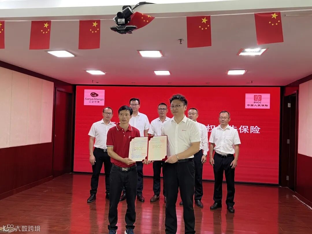 11月14日,三亚市首单地理标志被侵权保险在海南(三亚)农村产权交易服务中心成功落地。海南(三亚)农村产权交易服务中心、人保财险三亚市分公司、三亚市芒果协会相关负责人及业务骨干参加交接仪式。