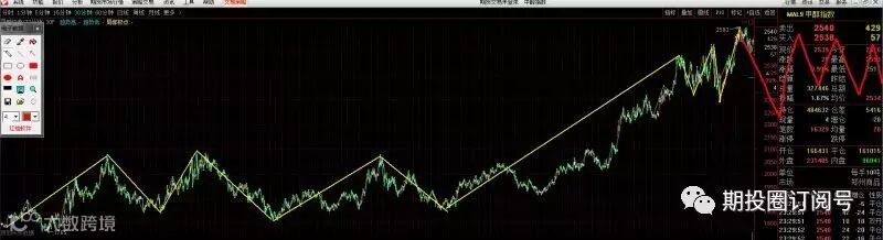 而在一段上升趋势中,你入场做多,只有最高点(一卖)你才是错的。在一段下跌趋势中你入场做空,只有最低点(一买)你才是错的。震荡中,没那个技术,就别做,有那个技术做做短差。那么技术系统中的第一个环节:开单—— 持单——平单,就有了。再结合一下赚钱逻辑,基本上就立于不败之地了。