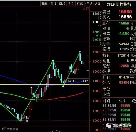 行情用两个高点,两个低点就可以给出一个方向了。棉花的周线指数是什么?上涨。这里缺什么?中枢。会不会走出一个中枢?这还用问吗?走势必完美啊!走一个中枢会怎么走出来?下上下上下上下。。。。。上下
