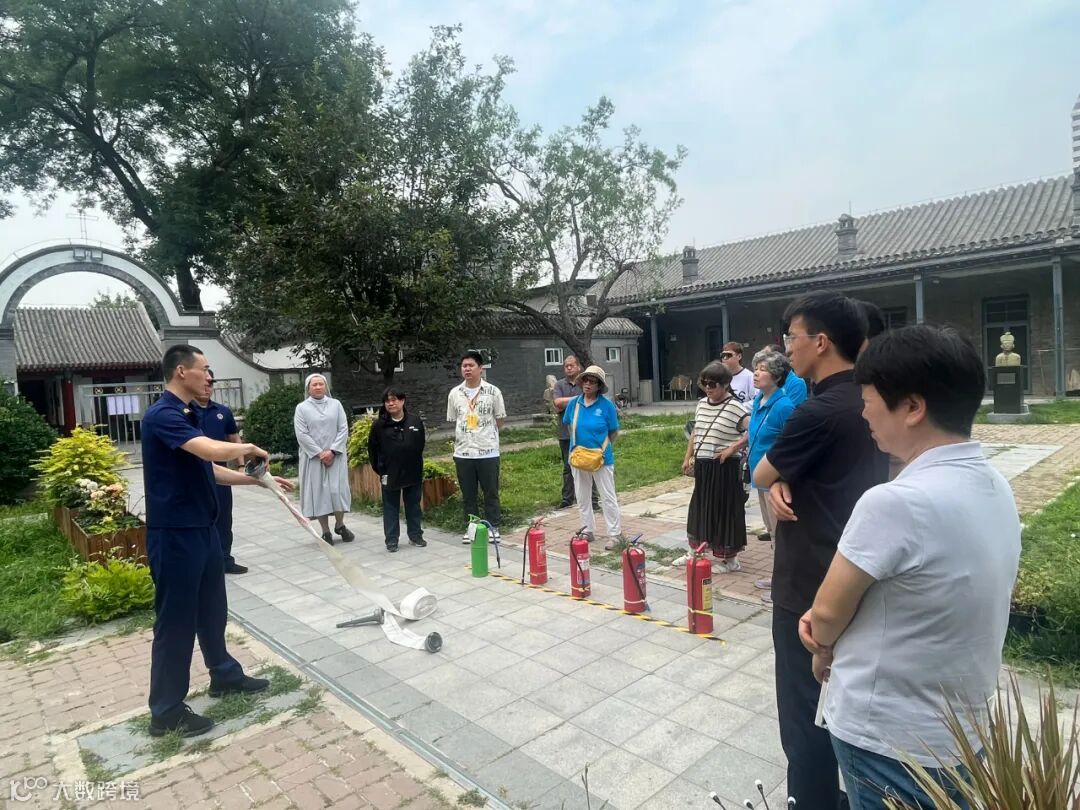 本堂张洪波神父从加强文物建筑消防安全风险防范意识和保障个人安全的角度强调了本次学习的重要性。西城区消防救援支队委派三名消防员现场授课和指导。