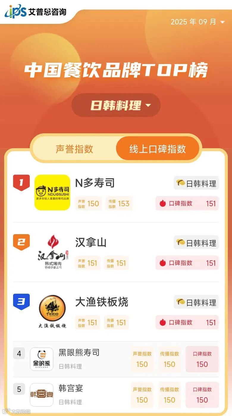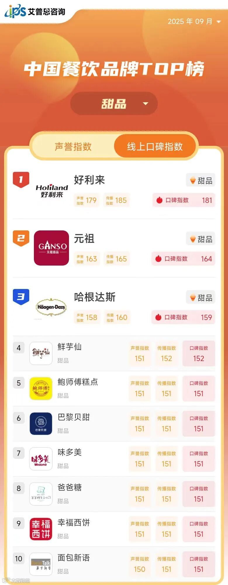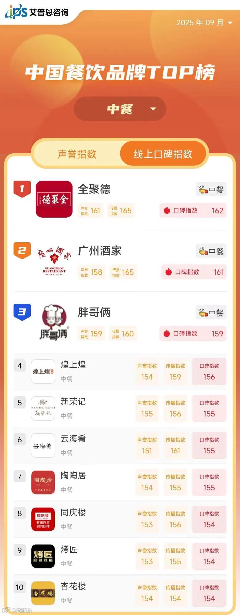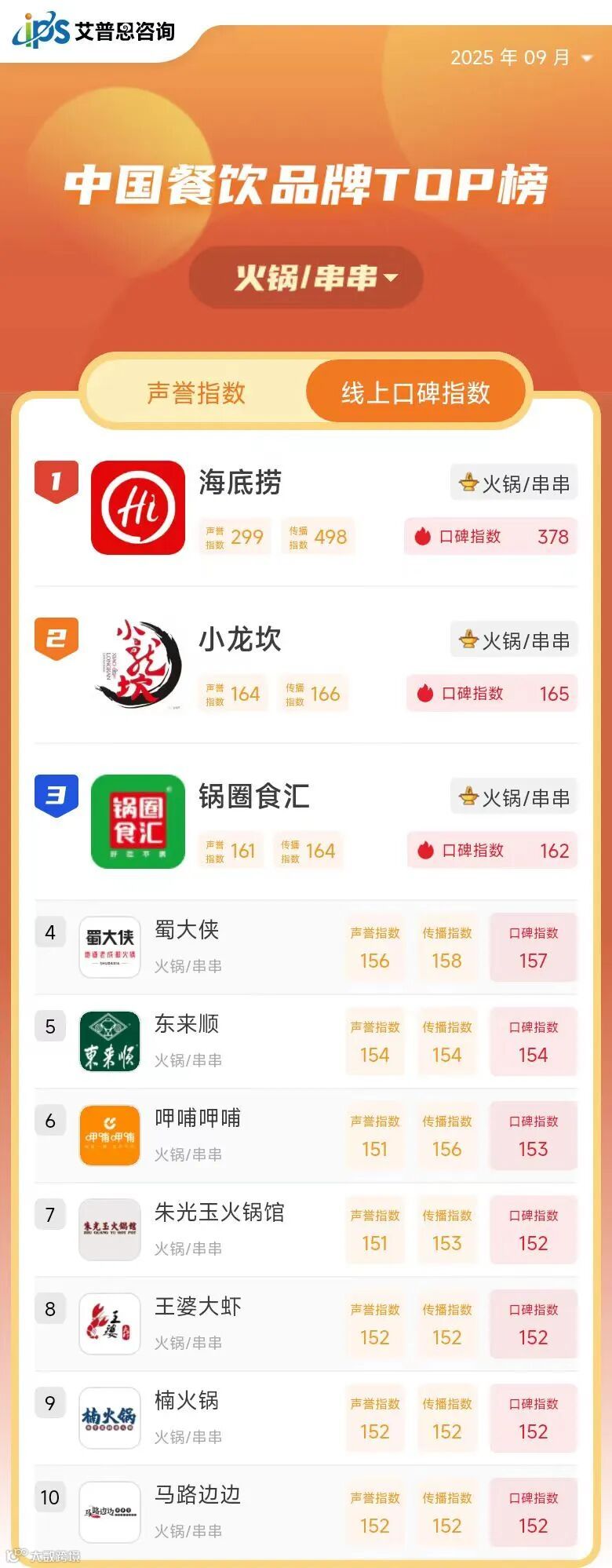线上口碑指数TOP10