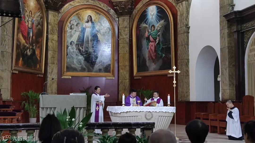 余神父说,他的堂区有1万多教友在那里,是一个“大堂口”,因为是重庆的骨灰堂(与咱们的西北旺一样),已故的1万多亲友恩人们都在那里。